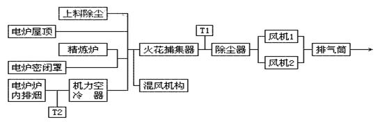 该厂通过向电炉内加入废钢、铁合金和部分渣料进行配料冶炼。该类型企业在生产过程中所产生的烟尘排放量大、粉尘细而黏、温度极高且连续排放,属难治理废气类